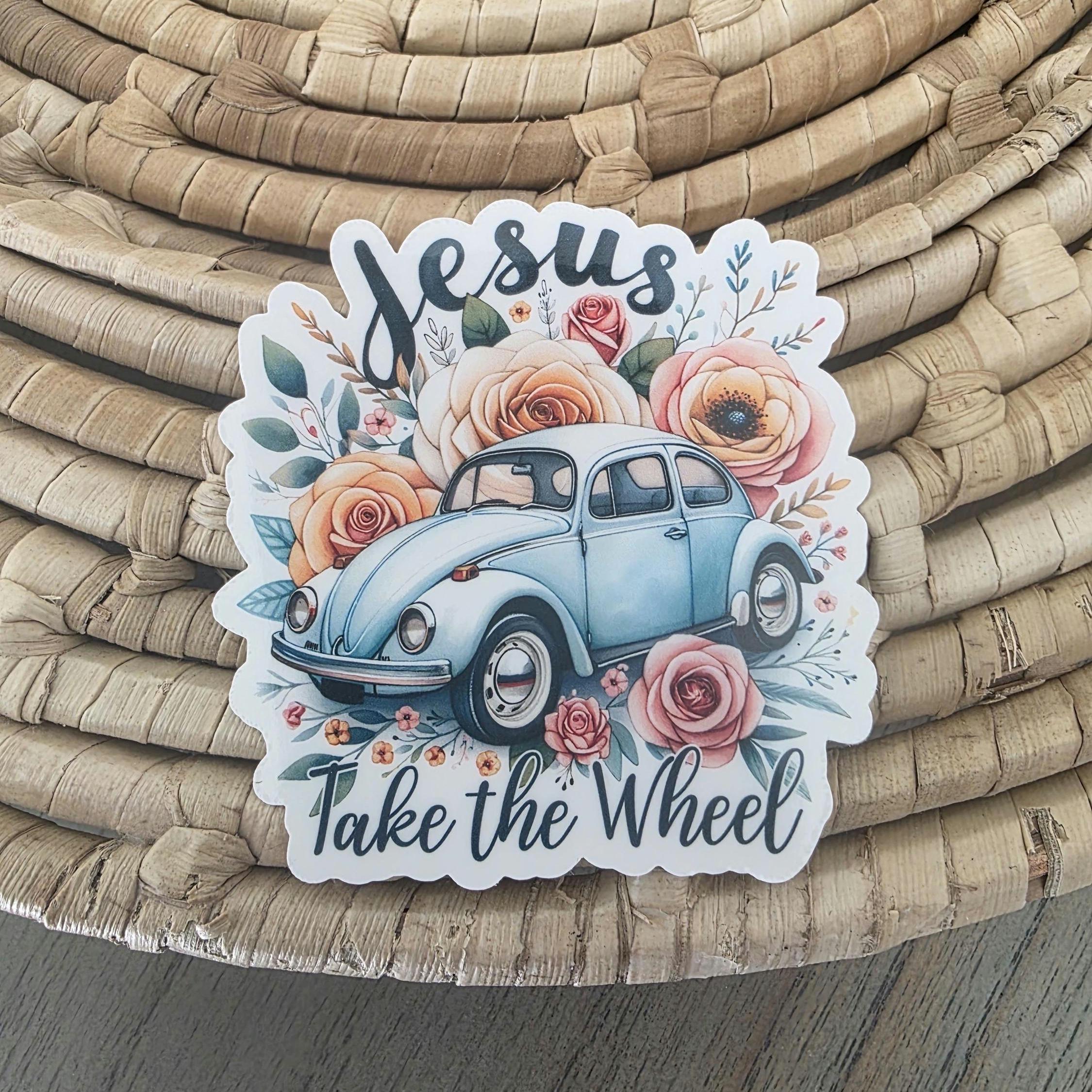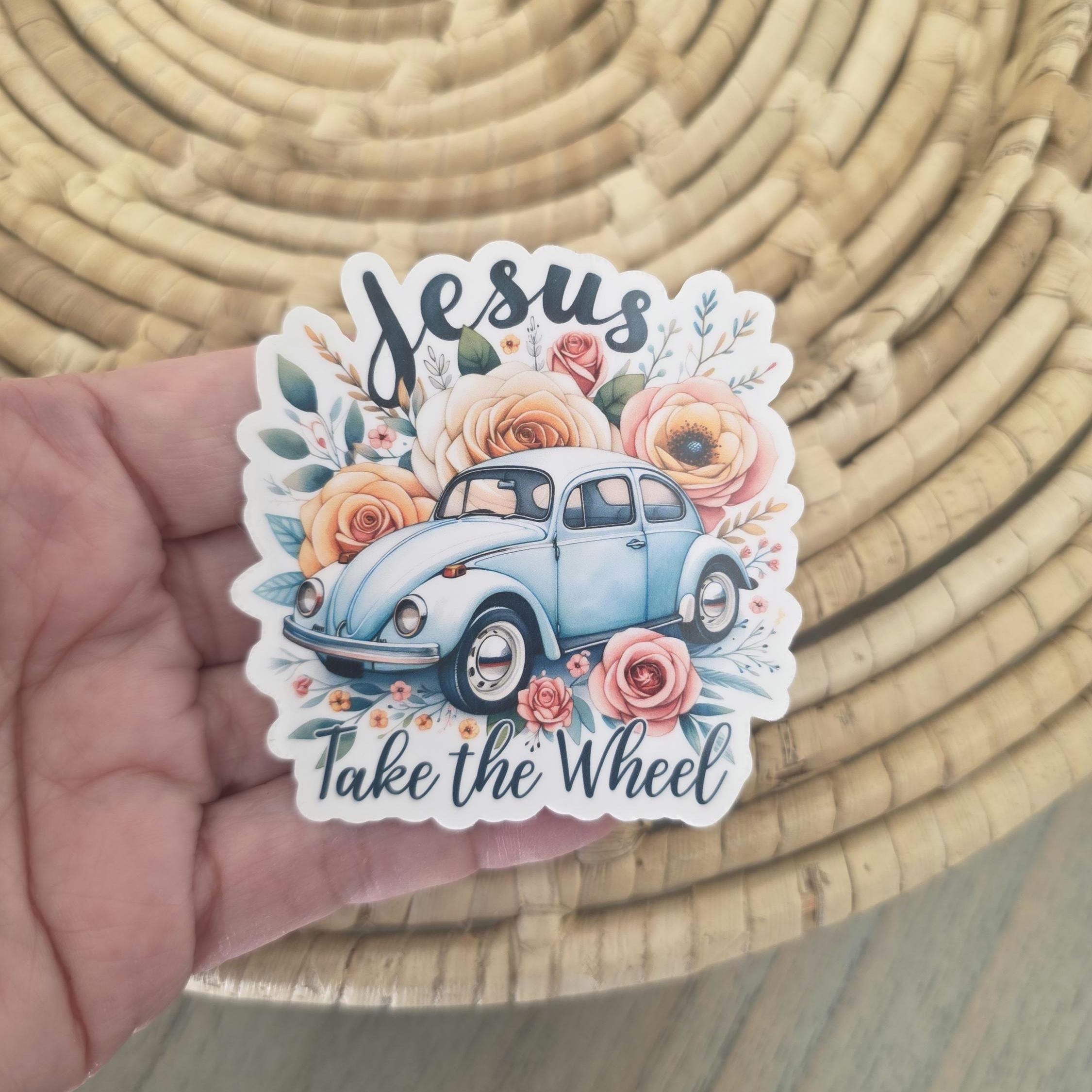 Jesus take the wheel christian bible sticker. The sticker is made with orafol 1917 sticker paper making it perfect for water bottles, notebooks, laptops, bikes, and all sorts of other items. Make sure to clean and dry the surface thoroughly before applying. Handwash all items. Do not put in dishwasher.