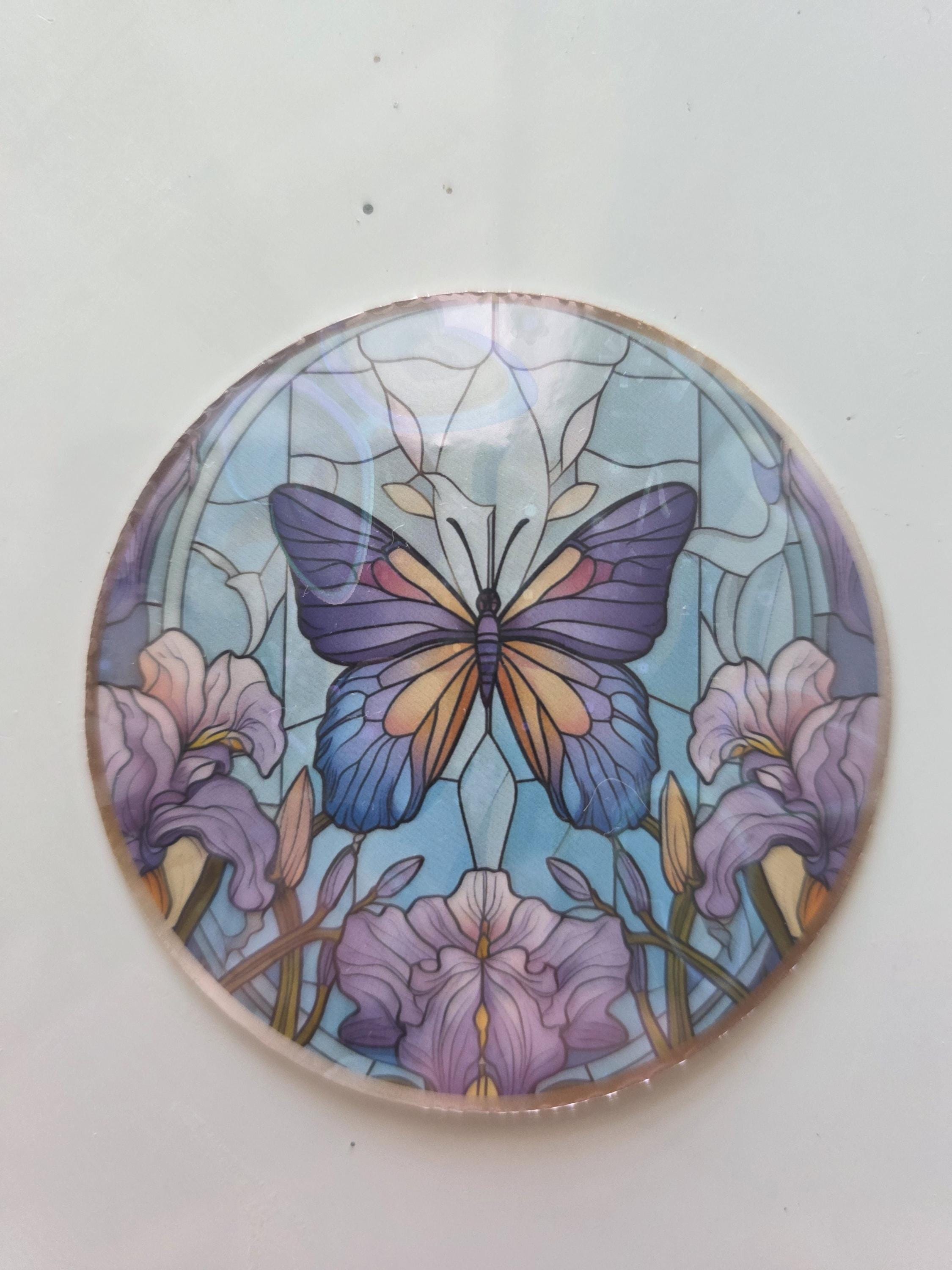 Holographic stained glass butterfly sticker, laptop decal, sticker for water bottle