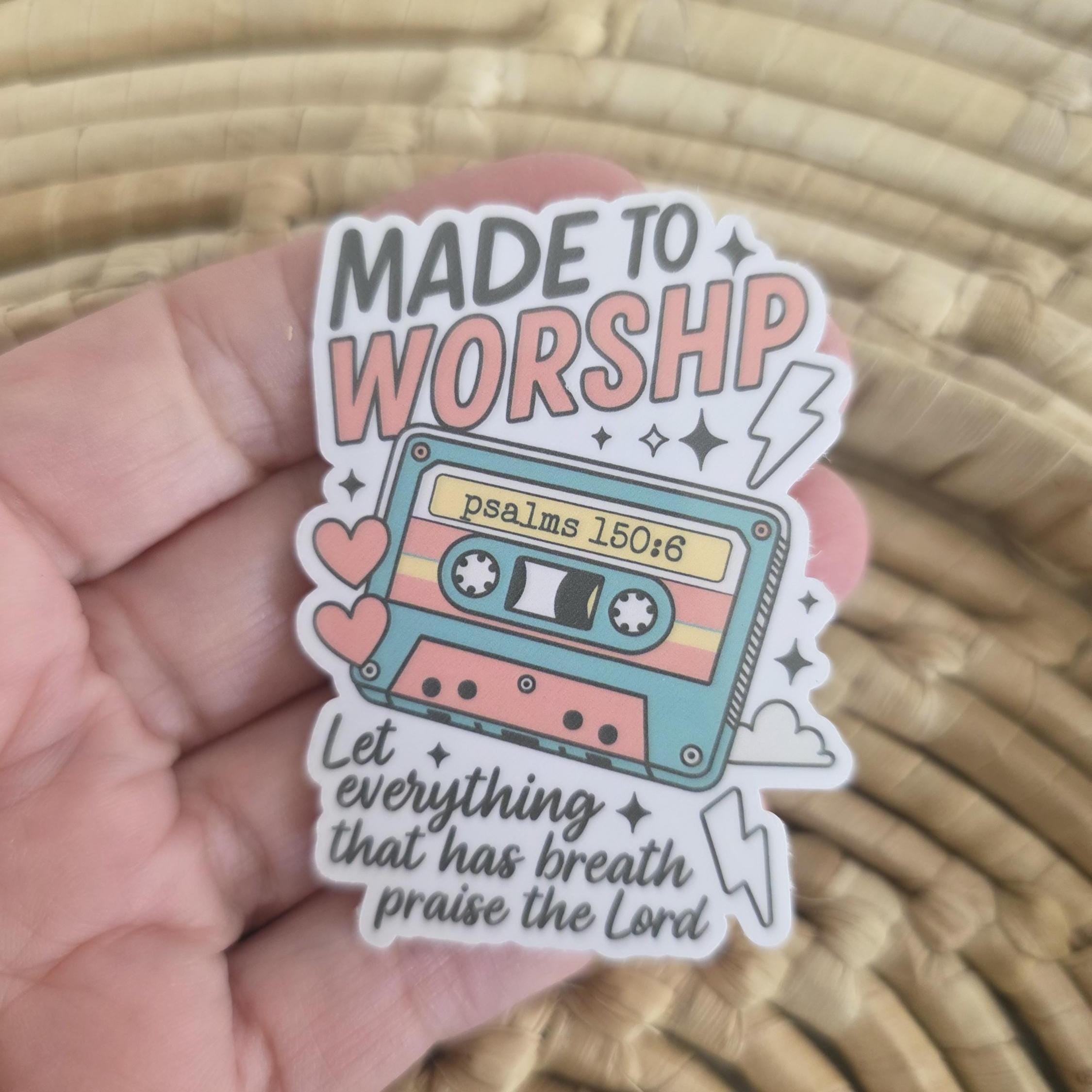 Made to worship christian sticker. The sticker is made with orafol 1917 sticker paper making it perfect for water bottles, notebooks, laptops, bikes, and all sorts of other items. Make sure to clean and dry the surface thoroughly before applying. Handwash all items. Do not put in dishwasher.