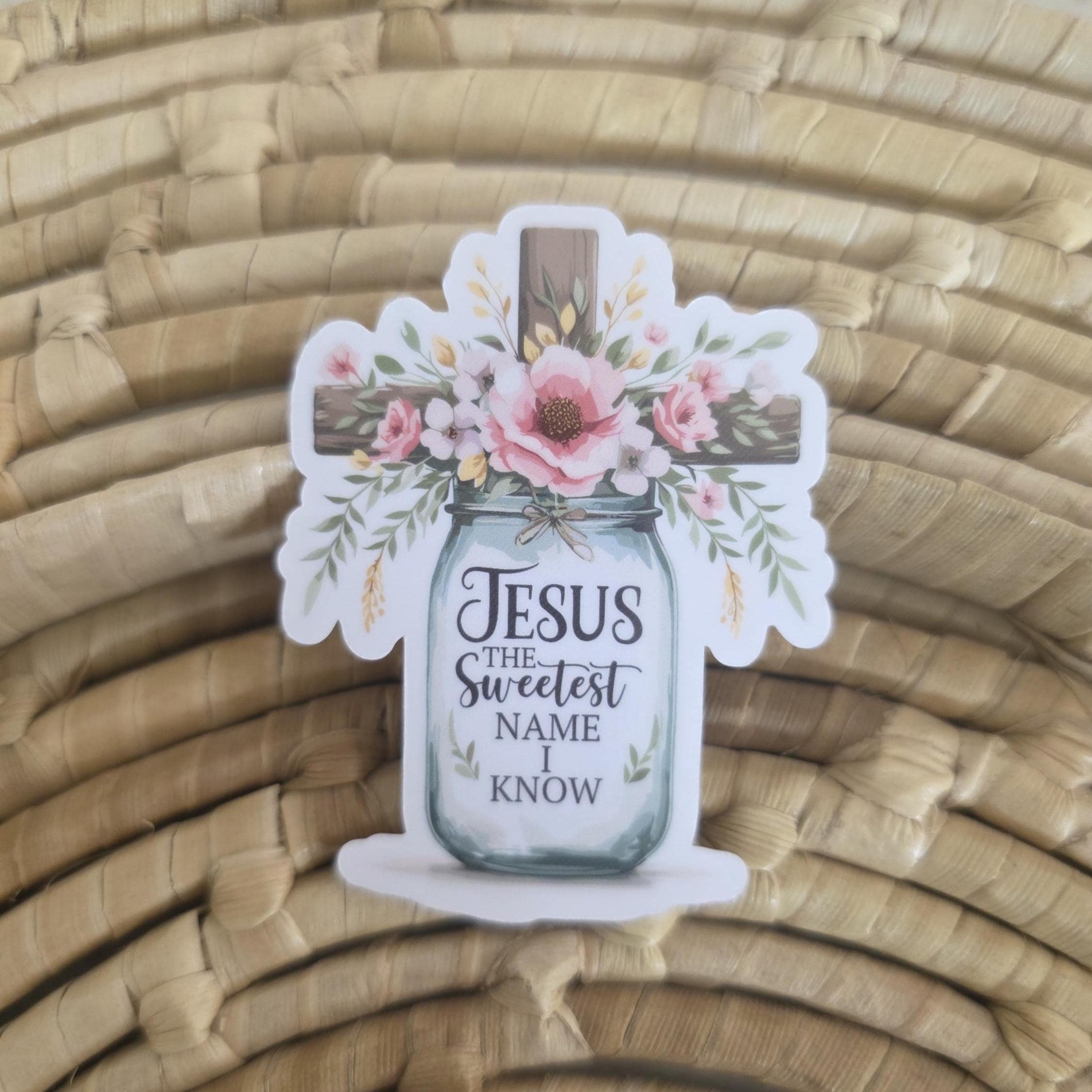 Jesus the sweetest name I know christian sticker. The sticker is made with orafol 1917 sticker paper making it perfect for water bottles, notebooks, laptops, bikes, and all sorts of other items. Make sure to clean and dry the surface thoroughly before applying. Handwash all items. Do not put in dishwasher.