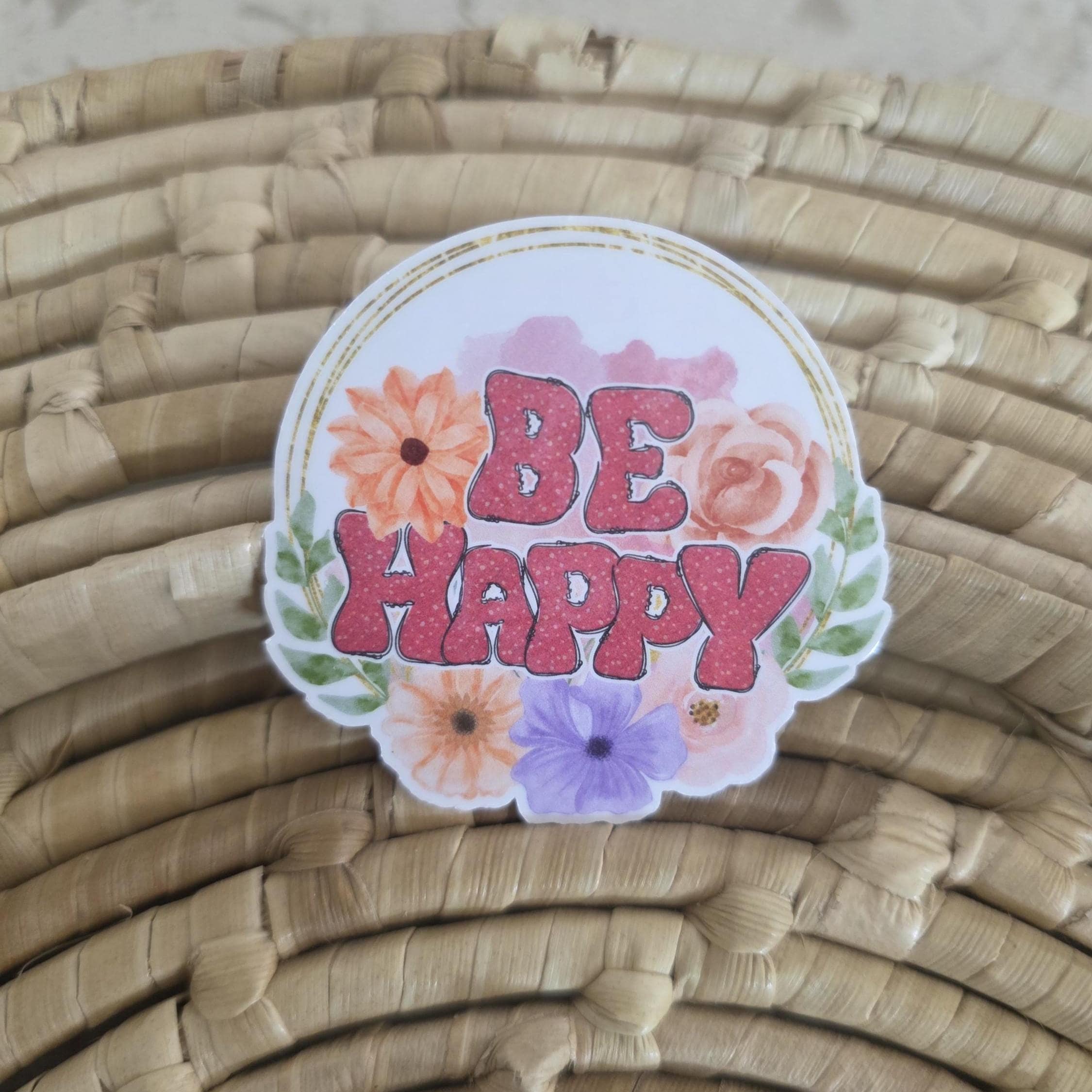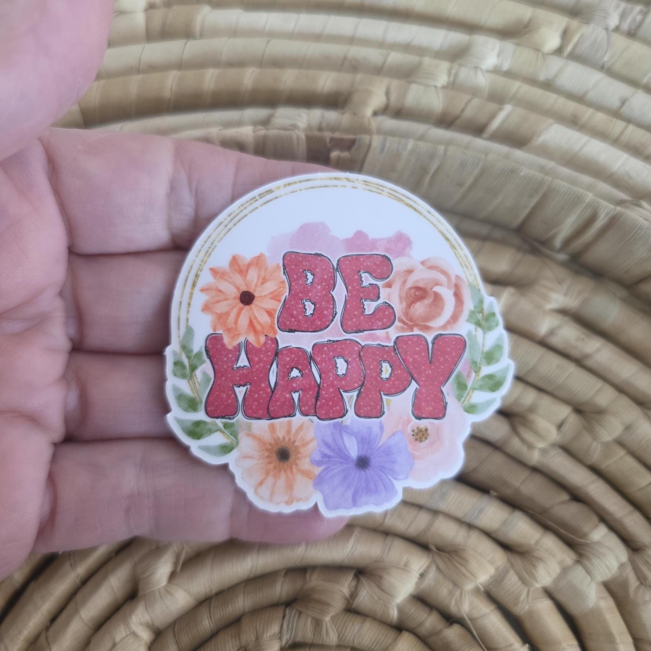 Be happy motivational sticker. Place on water bottle, laptop, bike, journal, car or anywhere you want a bit of inspiration.