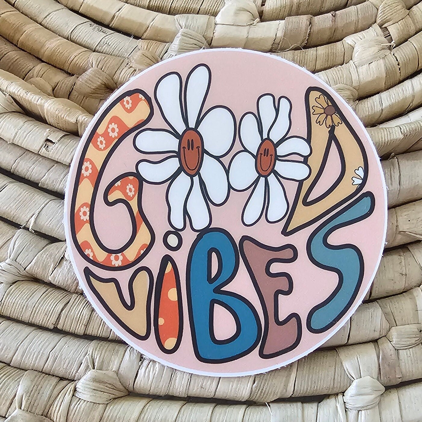 Good Vibes round matte sticker, boho sticker, retro decal
